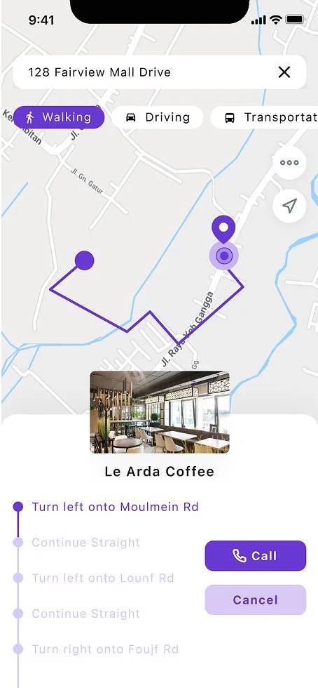 Rita taps on “Le Arda Coffee,” one of the nearby options. Without leaving the map, she sees a preview card with key info: ratings, walk time, open status, and real photos of the space.